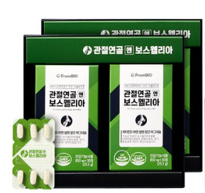 보스웰리아 추출물은 인체적용시험 결과로 관절통증감소나 붓기감소 등의 결과가 나왔다고 합니다. 또 프롬바이오 제품은 건강기능식품으로 안정성을 인정받았고 이외에도 뼈나 면역기능, 항산화 건강을 챙기기 좋은 다양한 영양성분이 들어있습니다.