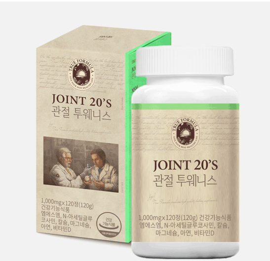 2021 한국 소비자 평가 최고의 브랜드 1위를 수상한 트루포뮬러의 관절투웨니스입니다. 1병에 120정이 들어있고 공식홈페이지 기준 1병에 38,500원이며, 1정에 약 320원으로 섭취할 수 있습니다. 관절이 자주 불편하거나 계단을 오르내리기 어려우신 분들이 섭취하면 좋다고 합니다.